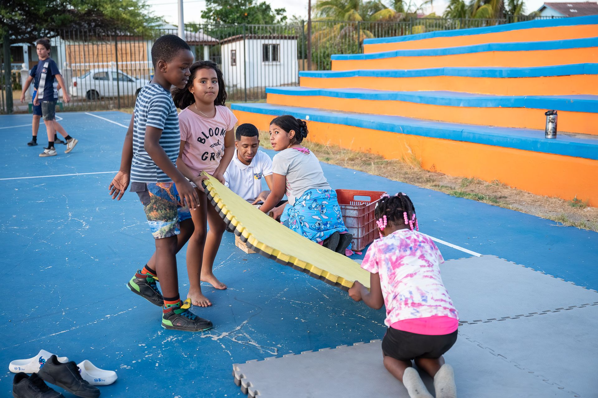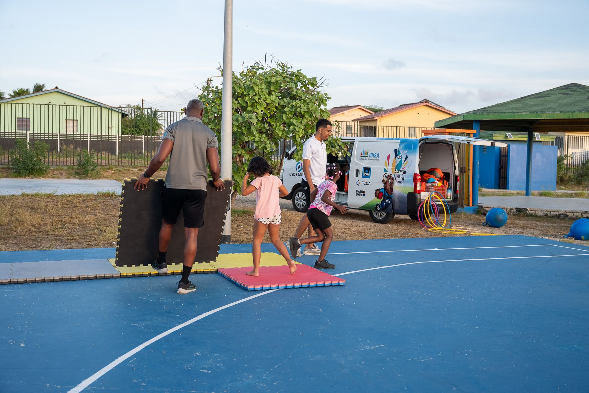 The Wega Ariba Wiel Mobiel (WAW – Mobiel) is a community program developed by CEDE ARUBA – BARiO UNiCO to make; sports, play and learning activities more accessible to children in neighborhoods across Aruba. IBiSA later joined the project to provide expertise in sports and recreation, while FCCA supports neighborhood selection, community engagement, and family participation). Korps Politie Aruba (KPA) also joined the project to ensure the security of not only the kids and youth participating in the program but also to ensure the security of the instructors.