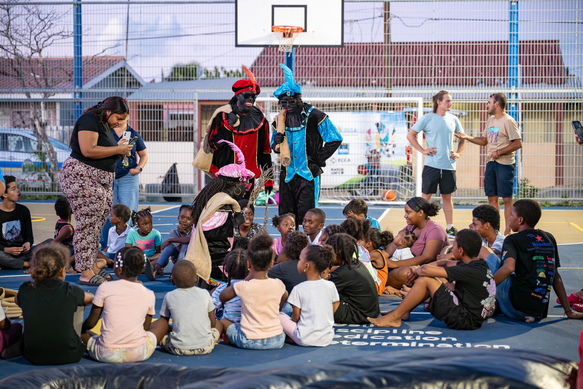 Closing events vary from movie watching to friendly matches with KPA, to a WAW day with Sint and Piet, a day for friendly basketball matches, days mixed with sports, entertainment and fun activities for kids and youth. Some extra events were created for days such as international rights of children day, on this day CEDE ARUBA – BARIO UNICO together with its partners IBiSA, FCCA and KPA, made sure to remind all kids of their rights, while giving them small bags filled with pamphlets, information and snacks (sponsorships from: El Louvre Witec, UNHCR, CEDE ARUBA).